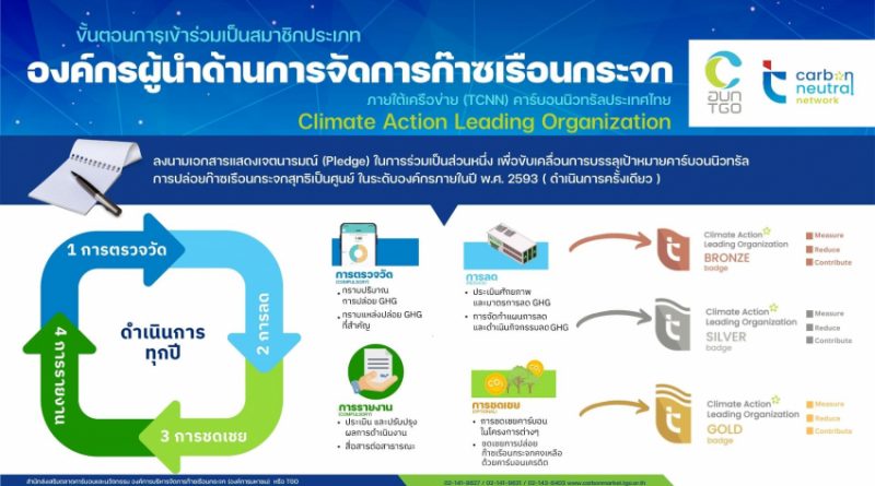 อนึ่ง เครือข่ายคาร์บอนนิวทรัลประเทศไทย หรือ Thailand Carbon Neutral Network หรือ TCNN เป็นความร่วมมือระหว่างองค์กรในการยกระดับการลดก๊าซเรือนกระจก จัดตั้งโดยองค์การบริหารจัดการก๊าซเรือนกระจก (องค์การมหาชน) หรือ TGO ในวันที่ 6 กรกฎาคม 2564 เพื่อสร้างการเติบโตอย่างยั่งยืนบนสังคมที่เป็นมิตรต่อสภาพภูมิอากาศ และมุ่งสู่ การปล่อยก๊าซเรือนกระจกสุทธิเป็นศูนย์ ตามเจตนารมณ์ของประชาคมโลกที่ปรากฏในเป้าหมายของความตกลงปารีส ปัจจุบัน มีสมาชิกจำนวน 275 องค์กร ประกอบไปด้วย องค์กรเอกชนบริษัท (Companies) สถาบันการศึกษา (Academic Institutions) มูลนิธิ (Foundations) สมาคมธุรกิจ (Business Associations) องค์กรระหว่างประเทศ (International Organization) และองค์กรภาครัฐ (Public Sector Organizations)