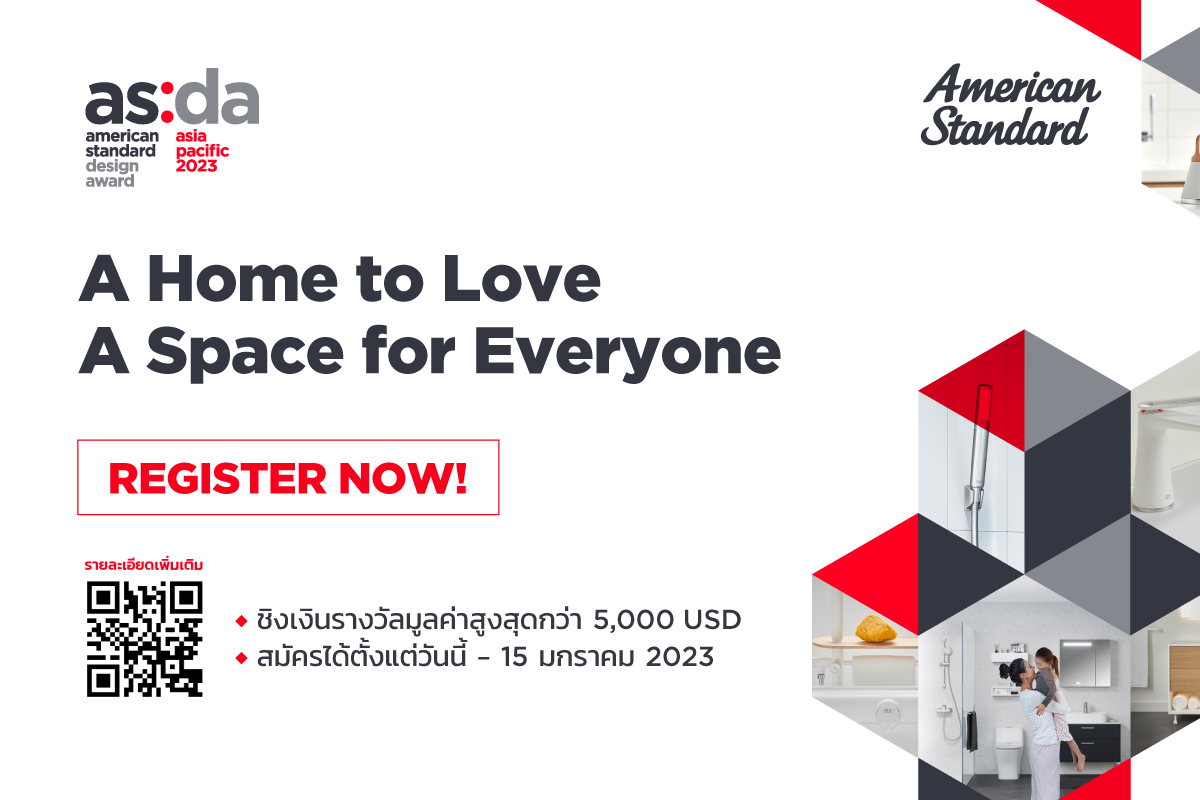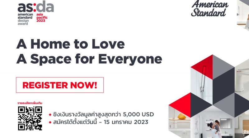 เวทีประชันความคิดสร้างสรรค์ด้านการออกแบบ American Standard Design Award 2023 (ASDA) เชิญชวนนักศึกษาระดับอุดมศึกษาสาขาการออกแบบส่งผลงานเข้าประกวด ภายใต้แนวคิด ‘A Home to Love, A Space for Everyone’ เปิดโลกแห่งจินตนาการใหม่ในการสร้างสรรค์พื้นที่อยู่อาศัยสำหรับการอยู่ร่วมกันของคนในหลายช่วงวัย