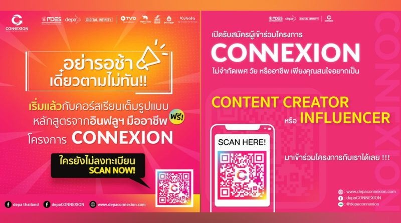 โอกาสมาแล้ว!! “ดีป้า” เปิดโครงการ CONNEXION รับสมัครอินฟลูฯมือใหม่ผลิตคอนเท้นต์ฮิตป้อนตลาด