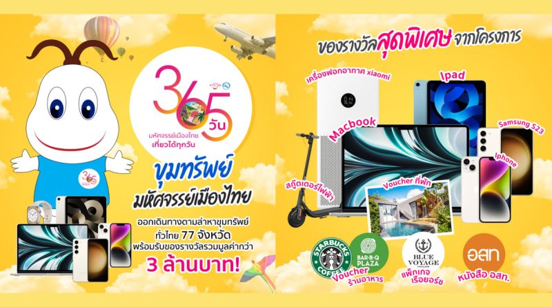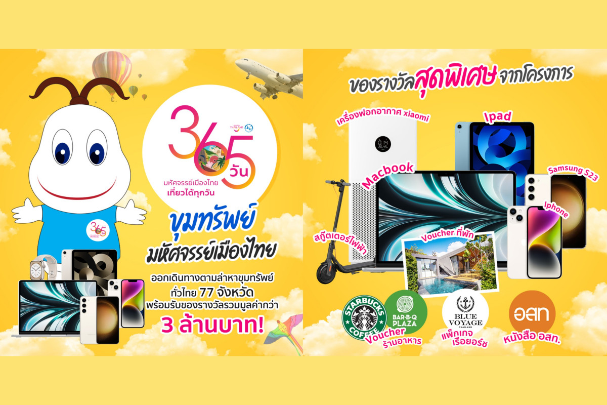 กิจกรรม “ขุมทรัพย์ 365 วัน มหัศจรรย์เมืองไทย” เป็นกิจกรรมที่ได้นำเอา Mascot ของททท. มาสร้างสรรค์เป็นกิจกรรมสุดเจ๋ง ให้นักท่องเที่ยวได้ออกตามหา “น้องสุขใจ” ที่จะตั้งอยู่ตามสถานที่ท่องเที่ยวต่างๆ ในแต่ละจังหวัด อาทิ อุโมงค์หน้าพระลาน บริเวณวัดพระแก้ว กรุงเทพมหานคร , อุทยานประวัติศาสตร์พนมรุ้ง จังหวัดบุรีรัมย์ , หาดไร่เลย์ จังหวัดกระบี่ , ตลาดน้ำอัมพวา จังหวัดสมุทรสงคราม เป็นต้น โดยเมื่อนักท่องเที่ยวพบน้องสุขใจแล้ว สามารถสแกน QR code เพียง 1 ครั้งก็รับของรางวัลสุดว้าวไปเลย ไม่ว่าจะเป็น ข้อมูลแหล่งท่องเที่ยวที่อยู่ในปฏิทินท่องเที่ยวไทย 365 วัน, สิทธิพิเศษส่วนลดจากโครงการ อาทิ โอเอซิส สปา , วีรันดา รีสอร์ท พัทยา , เซ็นทารา แกรนด์ บีช รีสอร์ท , วิลล่าหัวหิน เป็นต้น สิทธิพิเศษจาก Klook เช่น บัตรเข้าชมมหานคร สกายวอล์ค , บัตรเข้าชมสัตว์น้ำ ซีไลฟ์ แบงคอก โอเชี่ยน เวิลด์ , บุฟเฟต์อาหารในโรงแรมใบหยกสกาย เป็นต้น นอกจากนี้ยังมีของรางวัลสุดว้าวมากมาย เช่น สกู๊ตเตอร์ไฟฟ้า , Macbook , Iphone , Ipad และวอยเชอร์จากสถานประกอบการอื่น ๆ ทั่วไทย รวมมูลค่ากว่า 3 ล้านบาท โดยสามารถสแกนได้ 1 ครั้งต่อ 1 วันเท่านั้น ร่วมสนุกเพื่อรับของรางวัลได้ทุกวัน ตั้งแต่วันนี้ – 31 สิงหาคม 2566