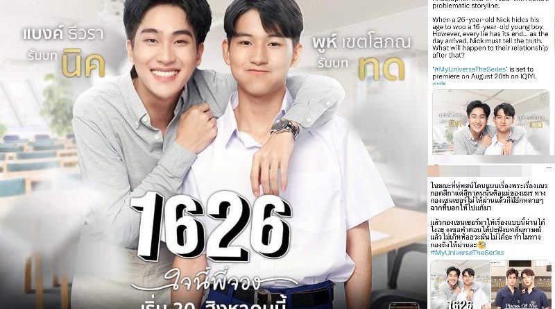 ร้อนแรงจนติดเทรนด์ทวิตเตอร์เลยทีเดียว สำหรับซีรีส์เรื่อง “เศษหนึ่งส่วนเรา” นำแสดงโดย นิค-เก็จชณัฐ สุวรรณบุตร และ น้ำ-ธนบดี วาธง กำกับโดย กิตติ์ บทศรี และเรื่อง “ใจนี้พี่จอง (1626)” นำแสดงโดย พูห์-เขตโสภณ โสภณมณี และ แบงค์ – ธีวรา ปัญญาธารา กำกับโดย ภาณุพงษ์ ไชโย ซึ่งเป็นหนึ่งในโปรเจคสุดยิ่งใหญ่แห่งปี กับ “My Universe The Series” ที่ล่าสุดกำลังตกเป็นประเด็นของสังคม เกี่ยวกับเรื่องเนื้อหาของซีรีส์ที่ไม่เหมาะสม โดยเฉพาะฉากเลิฟซีน ของคนอายุต่างวัย