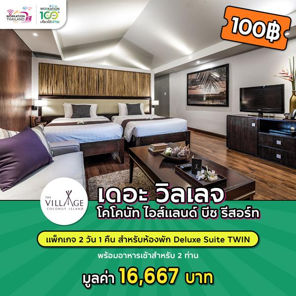สำหรับกิจกรรม “Workation Thailand 100 เดียวเที่ยวได้งาน” จะเป็นการนำเสนอขายบัตรกำนัล (Voucher) สินค้าและบริการด้านการท่องเที่ ยวที่หลากหลายประเภท โดยมีรายละเอียดดังนี้ ประเภทโรงแรมที่พัก อาทิ ไอบิส สไตล์ กระบี่ อ่าวนาง, อาน่า รีสอร์ท แอนด์ สปา เกาะช้าง, โรงแรม เดอะ สุโกศล กรุงเทพ, เดอะ วิลเลจ โคโคนัท ไอส์แลนด์ บีช รีสอร์ท, อมารี โวค กระบี่, อมารี ภูเก็ต, โรงแรมเคปพันวา, การ์เด้น คลิฟ รีสอร์ท แอนด์ สปา และ ยู นิมมาน เชียงใหม่ ประเภทยานพาหนะ อาทิ บัตรโดยสารเครื่องบิน เที่ยวเดียว เส้นทางบินในประเทศ 1 ที่นั่ง จากสายการบินแอร์เอเชีย ประเภทร้านอาหาร อาทิ คอฟฟี่บีน บายดาว, เปปเปอร์ ลันช์ และ สตาร์บัค ประเภทแพ็กเกจท่องเที่ยวและกิ จกรรมท่องเที่ยว อาทิ เมเจอร์ ซีนีเพล็กซ์, วานา นาวา วอเตอร์ จังเกิ้ล, สยามอะเมซิ่งพาร์ค, โอเอซิสสปา, มาดาม ทุสโซ กรุงเทพ และ ซีไลฟ์ แบงคอก เป็นต้น