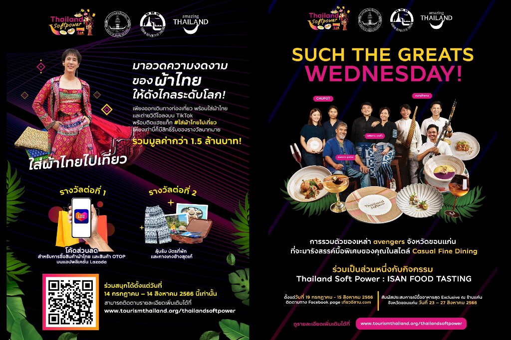 ททท. ผลักดัน Soft Power ไทยทุกมิติ จัดเต็มทั้งกิจกรรมออนไลน์ และออฟไลน์ เอาใจทั้งสายเที่ยว สายกิน สายแดนซ์ และสายแฟชั่น ลุ้นรับของรางวัลมากมาย พร้อมลุ้นสัมผัสประสบการณ์มื้ออาหารสุดพิเศษกับทางโครงการ