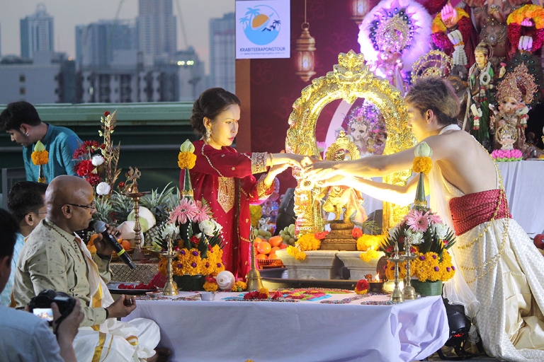 ด้าน“หมอจุ๊บ ไพ่เทพ ผ่าดวง” หมอดูที่มีชื่อเสียงทางด้านพิธีกรรมทางศาสนาฮินดู หรือพราหมณ์ และมีชำนาญด้านการดูดวงศาสตร์องค์เทพ มากกว่า 10 ปี ได้มีการจัดเทศกาลคเณศจตุรถี เป็นเวลาติดต่อกันมาหลายปี จะจัดพิธีกรรม “คเณศจตุรถี” ขึ้น เพื่อเป็นการเสริมสิริมงคลกับผู้ร่วมงาน และเพิ่มพลังงานดีๆ กับผู้ที่นับถือและศรัทธาพระพิฆเนศ โดยครั้งนี้เป็นการจัดพิธีกรรมฮินดูแบบอินเดียโบราณ ตามหลักของประเทศอินเดีย ซึ่งถือว่าหมอจุ๊บ ไพ่เทพ ผ่าดวงเป็นเจ้าแรกที่จัดขึ้นในประเทศไทย นอกจากจะได้ท่านพราหมณ์บัณฑิตอินเดียซึ่งเป็นคนอินเดีย มาเป็นผู้ประกอบพิธี สวดพระนามพระพิฆเนศและบูชาพระพิฆเนศ เพื่อเป็นสิริมงคล ซึ่งบุคคลทั่วไป และผู้ที่เข้ามาร่วมพิธี ยังนำองค์พระพิฆเนศที่บูชาที่บ้าน มาให้ท่านอาจารย์ช่วยทำพิธี เจิมองค์ เพื่อเพิ่มพลัง และเป็นสิริมงคลของท่านแล้ว ไฮไลท์ในงานอีกอย่างก็คือ ได้ “อาจารย์ป๋า-ปุญญาดิศ เถียรวิชิต” พราหมณ์เจ้าพิธีตัวจริง มาทำพิธีครอบเศียร พระพิฆเนศ ให้บุคคลที่เข้าร่วมงานอีกด้วย