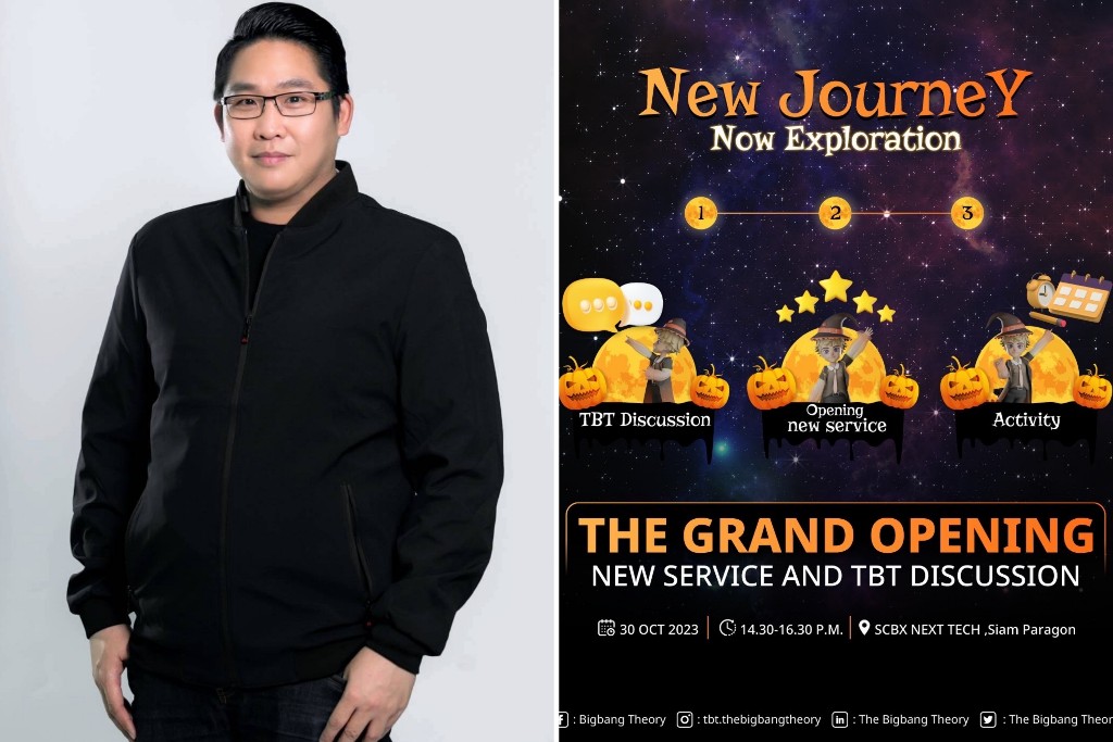 และในการจัดงาน New Journey, Now Exploration by The Bigbang Theory – The grand opening new service and TBT discussion ในครั้งนี้ถือเป็นการประกาศจุดยืนของบริษัทเดอะ บิ๊กส์แบง ทิออรี่ย์ จำกัด ที่มีความมุ่งมั่นตั้งใจที่จะช่วยผลักดันการเกิดสิ่งใหม่ๆ ให้กับทุกธุรกิจ โดยไม่หยุดพัฒนาแพลตฟอร์มให้ครอบคลุมการให้บริการระบบธุรกิจโลกเสมือนแบบครบวงจรอีกด้วย
