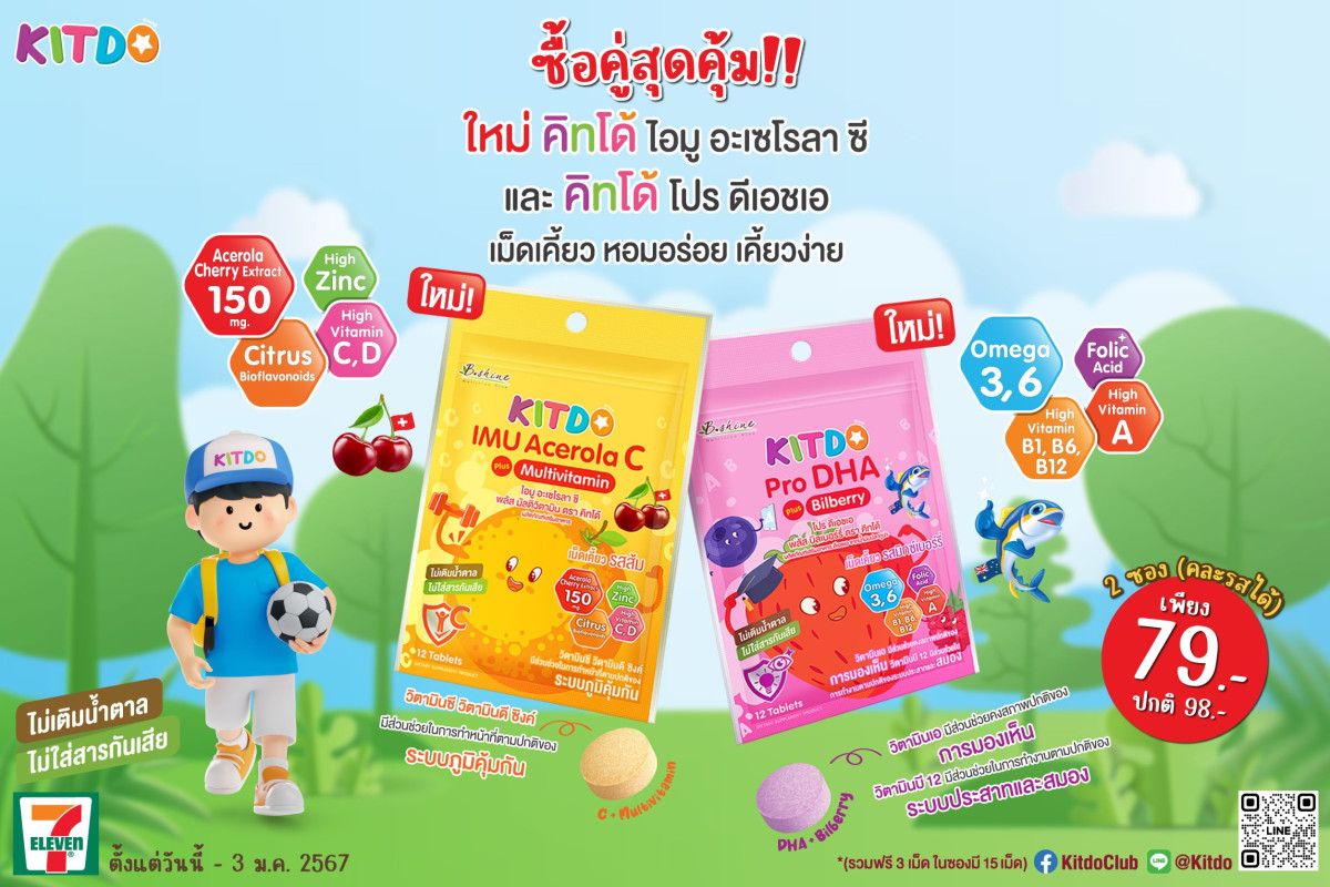 “คิทโด้” วิตามินเม็ดเคี้ยว ที่กำลังได้รับความนิยมอย่างมากในขณะนี้ มี 2 สูตร 2 รสชาติ เคี้ยวอร่อย อัดแน่นไปด้วยคุณภาพ พร้อมประโยชน์เน้นๆ อุดมไปด้วยสารอาหารที่จำเป็นครบถ้วนในแต่ละวัน ได้แก่ ผลิตภัณฑ์ “คิทโด้ ไอมู อะเซโรลา ซี พลัส มัลติวิตามิน” ช่วยเสริมสร้างระบบภูมิคุ้มกัน และ “คิทโด้ โปร ดีเอชเอ พลัส บิลเบอร์รี่” บำรุงสมองและสายตา หนูๆ น้องๆ ทานดี มีสารอาหารเสริมสร้างพัฒนาการเติบโตต่อร่างกาย ทุกคนในครอบครัวทานได้ มีประโยชน์ทุกช่วงวัย