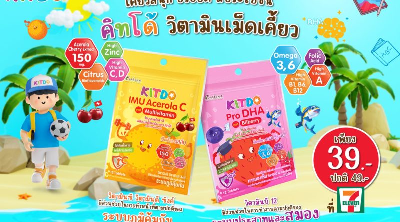 “คิทโด้” วิตามินเม็ดเคี้ยว 2 สูตร 2 รสชาติ ประโยชน์เน้นๆ ทานได้ทุกวัย พิเศษเพียงซองละ 39 บาท ที่เซเว่น อีเลฟเว่น ทุกสาขา