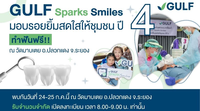 โครงการ “GULF Sparks Smiles มอบรอยยิ้มสดใสให้ชุมชน” เป็นโครงการออกหน่วยทันตกรรมเคลื่อนที่ เพื่อให้บริการตรวจฟันเบื้องต้นฟรี ทั้งอุดฟัน ถอนฟัน ขูดหินปูน เคลือบฟลูออไรด์ เอกซเรย์ และผ่าฟันคุด ซึ่งกัลฟ์ได้ดำเนินโครงการต่อเนื่องมาเป็นปีที่ 4 แล้ว และในปีนี้จะออกหน่วยทั้งหมด 4 ครั้ง โดยหน่วยที่ 1 เป็นหน่วยพิเศษสำหรับกลุ่มผู้พิการทางสายตา ณ โรงเรียนสอนคนตาบอด หน่วยที่ 2 ได้ลงพื้นที่ให้บริการที่ อ.ภาชี จ.พระนครศรีอยุธยา ซึ่งเป็นพื้นที่ตรงกลางที่สามารถให้บริการประชาชนได้ทั้งในพื้นที่ จ.พระนครศรีอยุธยา และ จ.สระบุรี หน่วยที่ 3 ขยายพื้นที่ความช่วยเหลือไปที่ อ.ปลวกแดง จ.ระยอง และจะกลับมาออกหน่วยทันตกรรมเคลื่อนที่ครั้งสุดท้ายที่ คณะทันตแพทยศาสตร์ จุฬาลงกรณ์มหาวิทยาลัย เนื่องในวันทันตสาธารณสุข