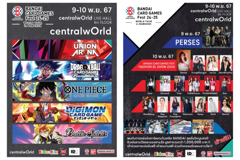 แฟนๆ “BANDAI CARD GAMES” เตรียมตัวให้พร้อม แล้วมาระเบิดความมันส์กันอีกครั้ง กับอีเวนต์สุดยิ่งใหญ่แห่งปี “BANDAI CARD GAMES Fest 24-25 World Tour in Bangkok” ที่งานนี้ บริษัท คิดซ์ แอนด์ คิทซ์ จำกัด ผู้แทนจำหน่ายและผลิต Card Game ลิขสิทธิ์แท้จากญี่ปุ่น ร่วมกับ บริษัท บันได จำกัด (ประเทศญี่ปุ่น) เจ้าของลิขสิทธิ์การ์ดเกมยอดฮิตแบรนด์ “BANDAI CARD GAMES” จัดขึ้น เพื่อให้เหล่า