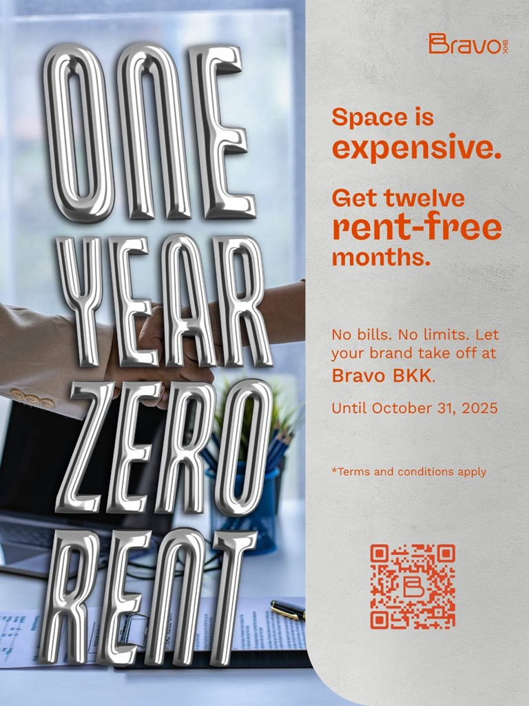 เพื่อตอกย้ำถึงแผนครึ่งปีหลังที่ต้องการสร้างพันธมิตรใหม่ ๆ แคมเปญ “One Year Zero Rent” จึงเป็นการมอบข้อเสนอสุดพิเศษให้แบรนด์และผู้ประกอบการที่มองหาพื้นที่ในการเริ่มต้นธุรกิจหรือขยายธุรกิจเช่าพื้นที่ฟรีนาน 12 เดือน เมื่อเซ็นต์สัญญาเช่าพื้นที่กับ Bravo BKK ตามเงื่อนไขที่กำหนด (สัญญาเช่า 3 ปี: ปีที่ 1 ฟรีค่าเช่า 100% ปีที่ 2 รับส่วนลดค่าเช่า 50% และปีที่ 3 ชำระค่าเช่าในอัตราปกติ) ตั้งแต่วันที่ 1 สิงหาคม 2568 – 31 ตุลาคม 2568 โดยผู้ประกอบการที่สนใจสามารถส่งโปรไฟล์ธุรกิจ ร้านค้า เพื่อพิจารณาเข้าร่วมแคมเปญได้ที่ อีเมล :leasingandevent-team@bravobkk.co.th หรือ Line Official @Bravo BKK