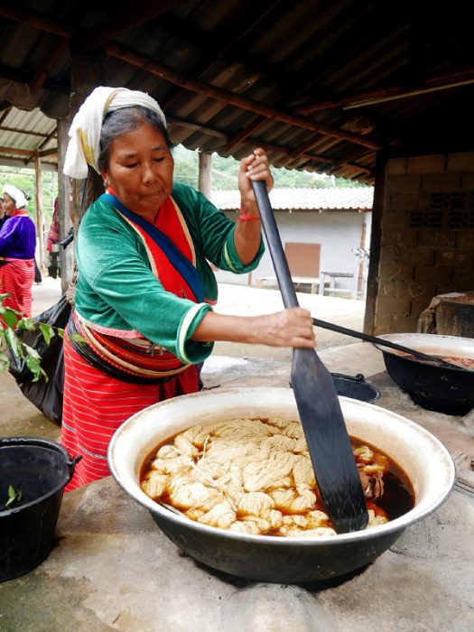 นางคอง เหง ฐานะชาวบ้านและประธานกลุ่มหัตถกรรมย้อมสีธรรมชาติบ้านปางแดงใน กล่าวว่า “เมื่อก่อนเราทอผ้าใช้กันเอง ไม่ได้คิดว่าจะขายได้ แต่พอทาง สวพส. เข้ามาช่วยอบรมเรื่องการย้อม การออกแบบ แล้วก็การขายออนไลน์ ตอนนี้เราก็มีรายได้เลี้ยงครอบครัว ลูกหลานที่เรียนจบก็กลับมาช่วยงานที่บ้าน มันเป็นความภูมิใจ นอกจากนี้ยังได้นำวัตถุดิบจากธรรมชาติอย่างเปลือกไม้และใบไม้ที่หาได้ในป่ามาใช้ในการย้อมสี ซึ่งสะท้อนถึงภูมิปัญญาและคุณค่าทางวัฒนธรรมของเรา”