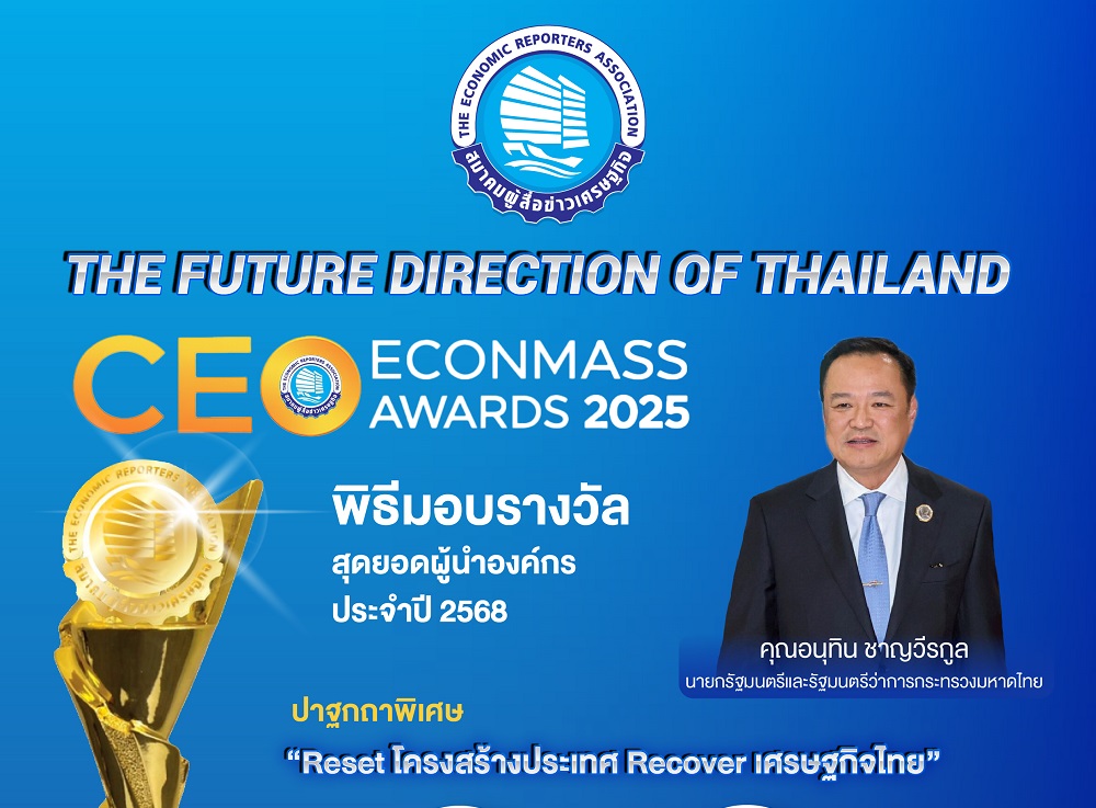 น.ส.ดวงพร อุดมทิพย์ นายกสมาคมผู้สื่อข่าวเศรษฐกิจ เปิดเผยว่า ในวันที่ 8 ตุลาคม 2568 สมาคมผู้สื่อข่าวเศรษฐกิจ ร่วมกับ คณะกรรมการร่วมภาคเอกชน 3 สถาบัน (กกร.), สำนักงานคณะกรรมการนโยบายรัฐวิสาหกิจ (สคร.) และ มหาวิทยาลัยหอการค้าไทย ได้เตรียมจัดงานประกาศผลและมอบรางวัลสุดยอดผู้นำองค์กร ประจำปี 2568 “CEO Econmass Awards 2025” และงานสัมมนาใหญ่เศรษฐกิจไทย ประจำปี 2568 ในหัวข้อ “The Future Direction of Thailand 2025 : เมื่อโลกเปลี่ยน…ประเทศไทยไปทางไหน?” ณ โรงละครอักษรา คิง เพาเวอร์ กรุงเทพฯ ตั้งแต่เวลา 13.00 น.เป็นต้นไป