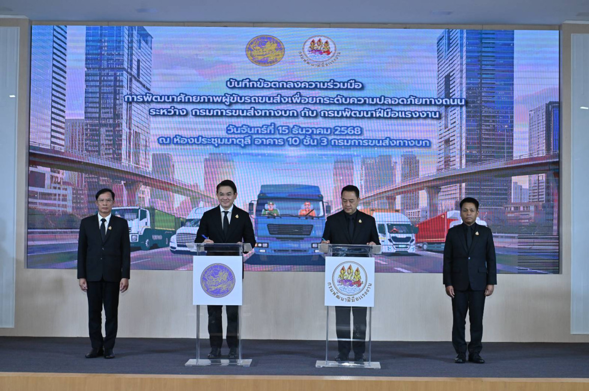 “กรมการขนส่งทางบก” จับมือ “กรมพัฒนาฝีมือแรงงาน” ติวเข้มผู้ขับรถขนส่งทั่วไทย! ผนึกกำลังยกระดับมาตรฐานขับขี่ปลอดภัย ป้อนตลาดโลจิสติกส์ แก้ปัญหาขาดแคลนแรงงาน