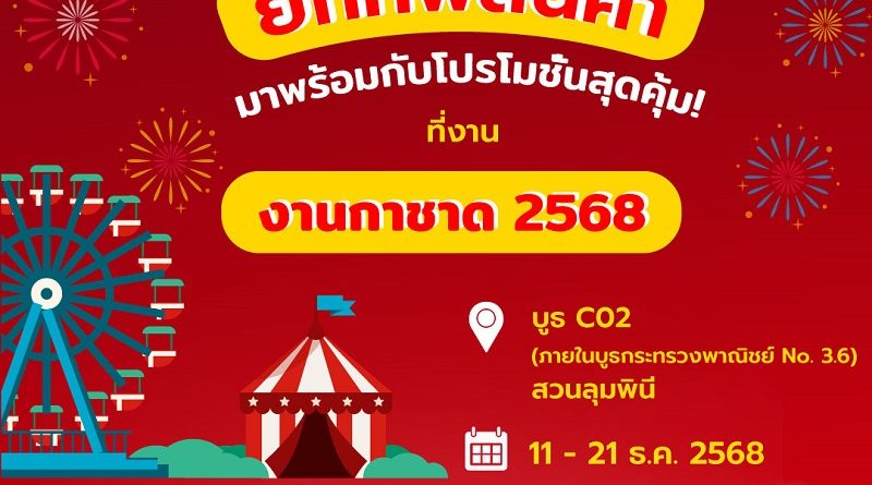 Lifestyle & Beauty ธันวาคม 19, 2025 Admin2 วุ้นเส้นต้นสน ร่วมออกบูธ “งานกาชาด 2568“ ยกทัพสินค้า พร้อมโปรโมชั่นสุดคุ้ม แนะนำสินค้าใหม่ “ต้นสน อีทซี่” อร่อยง่ายตอบโจทย์ GEN ใหม่ บริษัท สิทธินันท์ จำ Read More